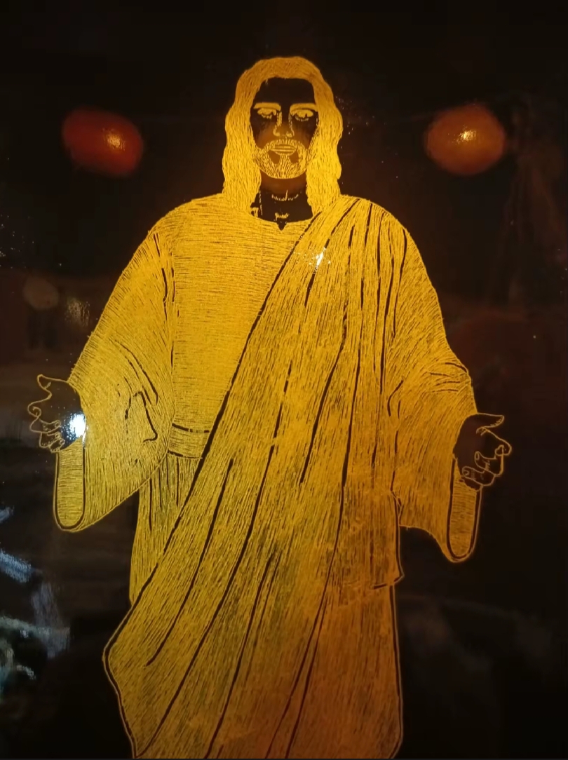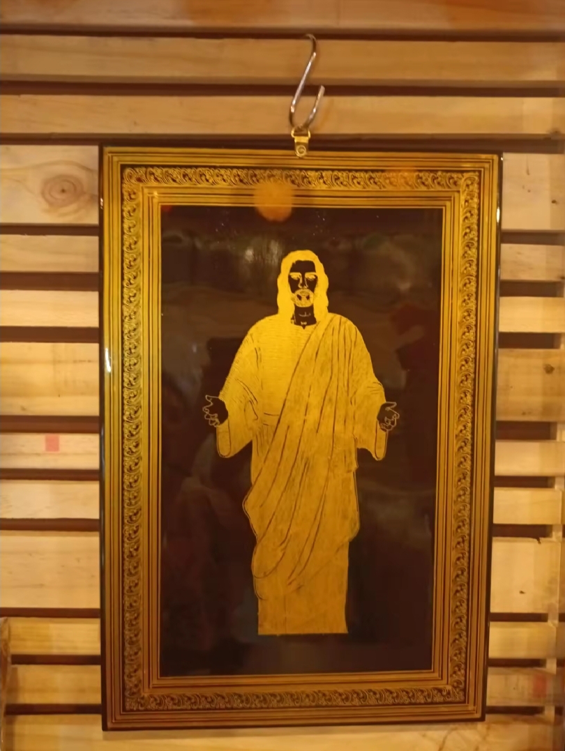 ภาพเขียนศิลปะรูปพระเยซูคริสต์ชิ้นนี้ เป็นการผสมผสานระหว่างศรัทธาและงานฝีมือที่หาได้ยากและซาบซึ้งกินใจอย่างยิ่ง สร้างสรรค์ขึ้นอย่างพิถีพิถันโดยช่างฝีมือชาวพม่า โดยใช้เทคนิคการลงรักแบบดั้งเดิมของเมียนมาร์ ภาพนี้วาดบนแผ่นไม้ไผ่หรือไม้สัก สร้างขึ้นด้วยแล็กเกอร์ธรรมชาติหลายชั้น ขัดเงาและแกะสลักอย่างพิถีพิถัน เสริมด้วยแผ่นทองคำเปลว เม็ดสีธรรมชาติ และรายละเอียดอันประณีต